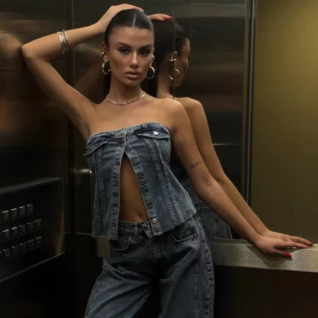 Дънково бюстие с ластичен гръб, син цвят, Ft8481