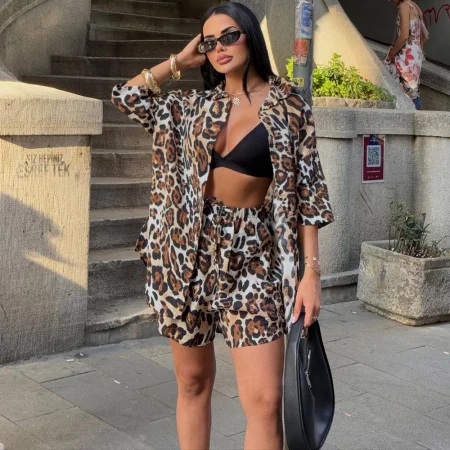 Kомплект, сет риза с къс панталон, леопардов десен, Ft8482