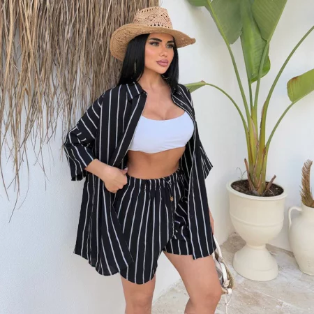 Kомплект, сет риза с къс панталон, черно райе, Ft8485