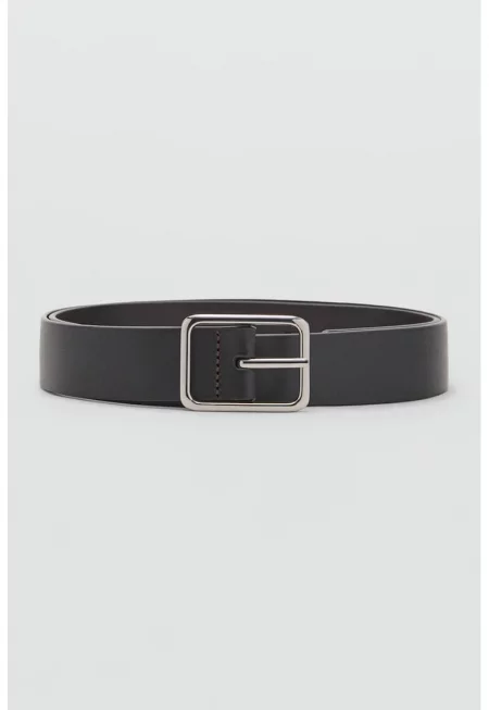 Тънък кожен колан - Черен -
