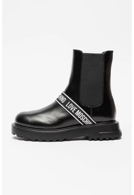 Кожени боти Chelsea с лента с лого - Черен/Бял
