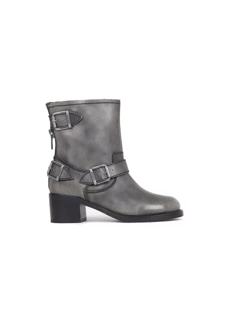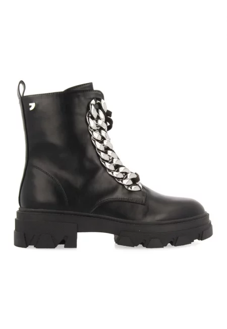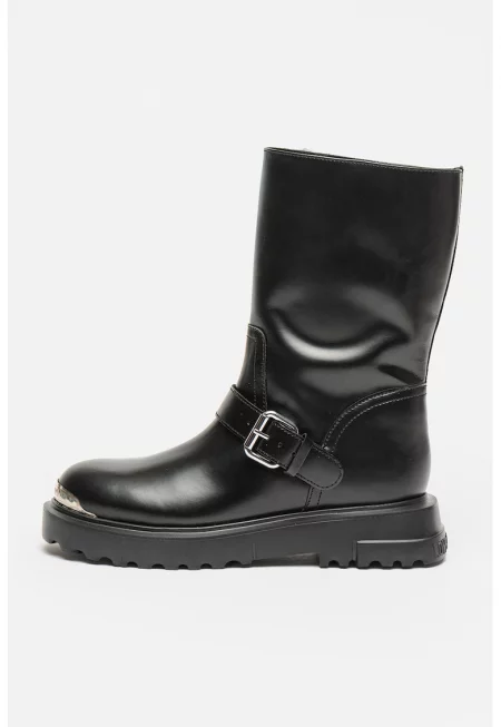 Кожени ботуши с метална апликация - Черен/Сребрист