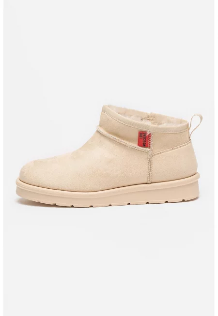 Велурени боти с еко пух - Светло кафяво