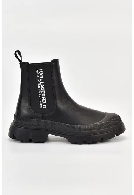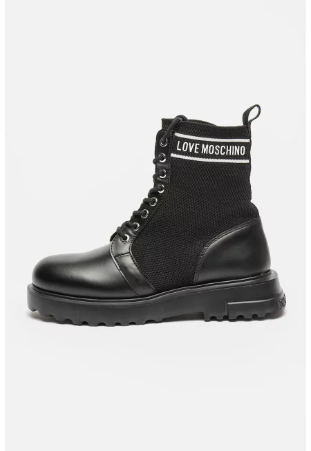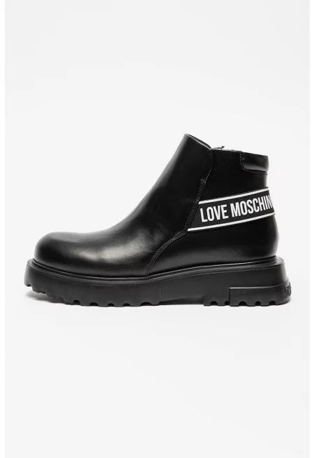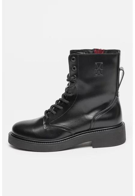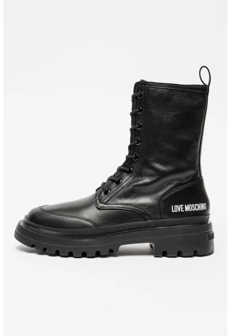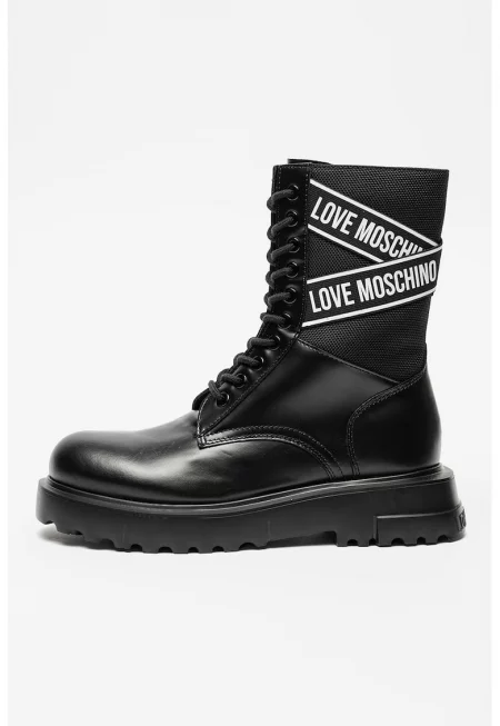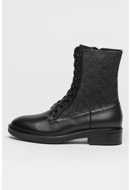 Кожени ботуши с лого - Черен/Бял/Сребрист