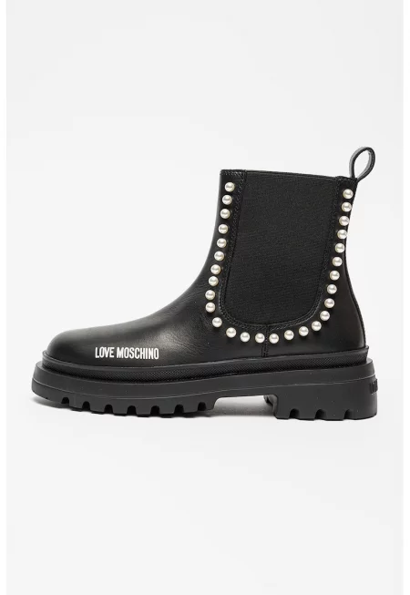 Кожени боти Chelsea с перли - Черен/Бял