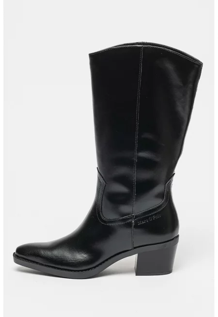 Кожени ботуши с тока - Черен
