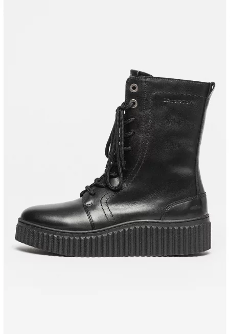 Кожени боти с релеф - Черен