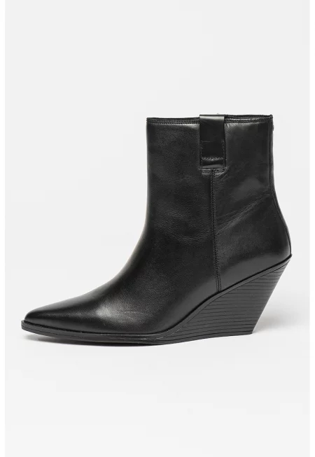 Кожени боти със скосена подметка - Черен