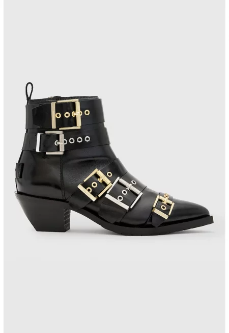 Кожени боти Oure с бляскав дизайн - Златист/Сив