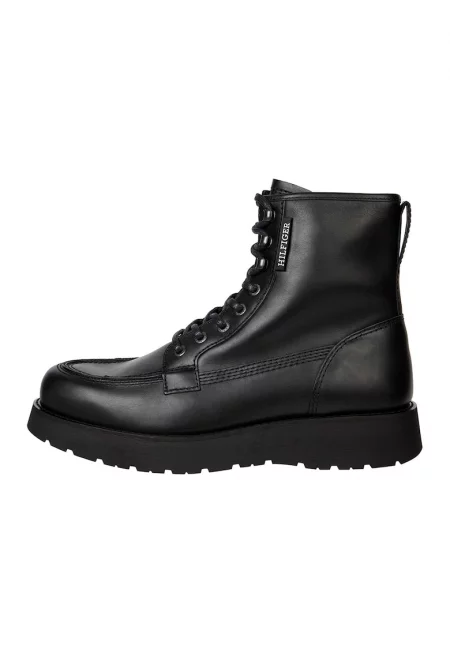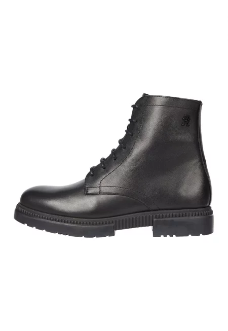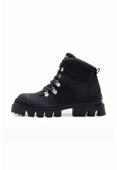 Боти от кожа с връзки и цип - Черен