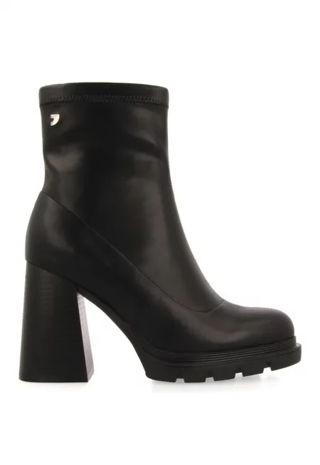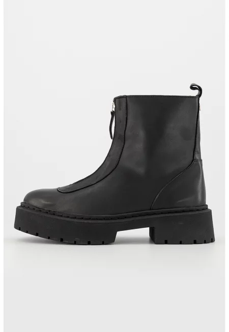 Кожени ботуши с масивен ток - Черен