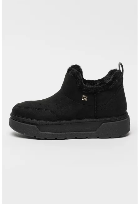 Велурени полускосени боти с еко пух - Черен