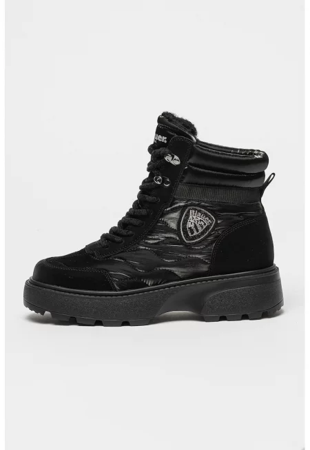 Боти от еко кожа с кожа - Черен/Тъмносин
