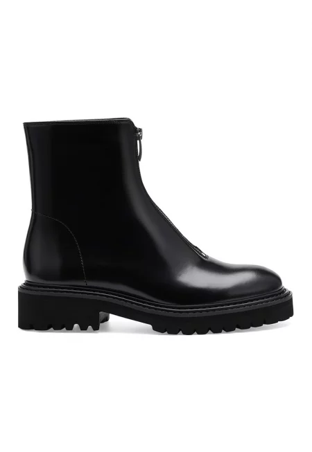 Кожени боти с цип - Черен