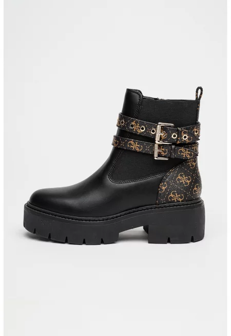Боти от еко кожа с лого - Черен/Кафяв