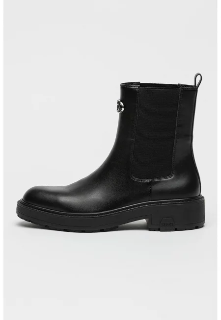 Кожени боти челси с метално лого - Черен