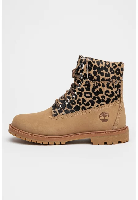 Боти Premium 6 от набук с кожа с косъм - Черен/Бежов