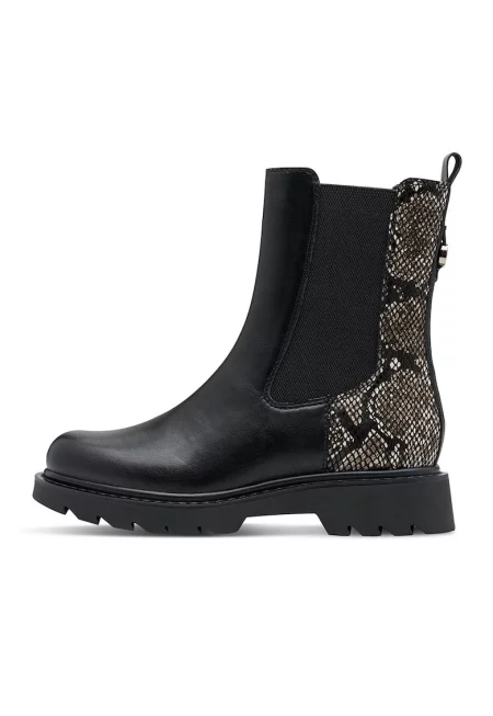 Боти Chelsea от еко кожа с шагрен - Черен/Светло бежово