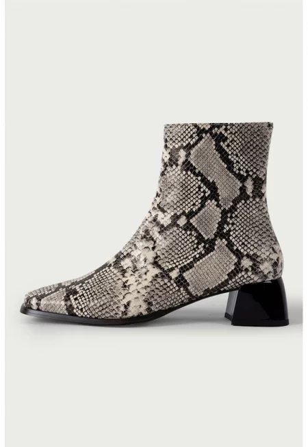 Кожени боти с шагрен - Слонова кост/Черен