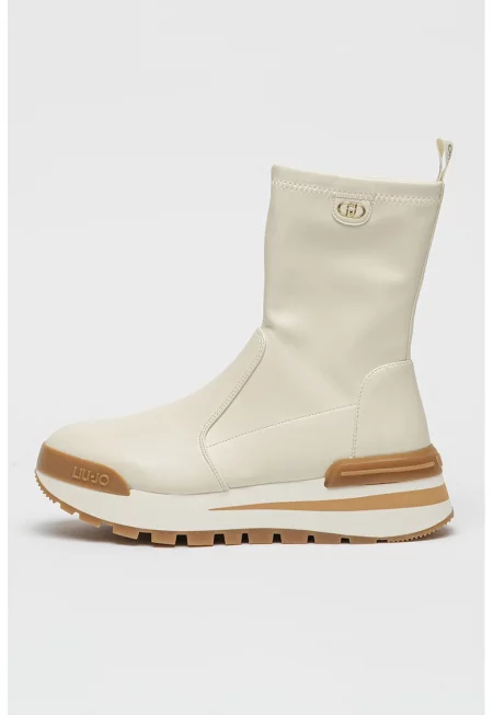 Скосени боти с еко кожа - Мръснобял