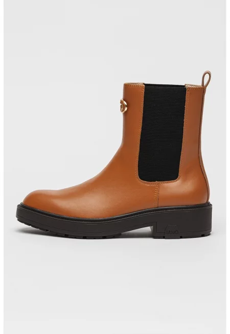Кожени боти челси с метално лого - Канелено кафяво