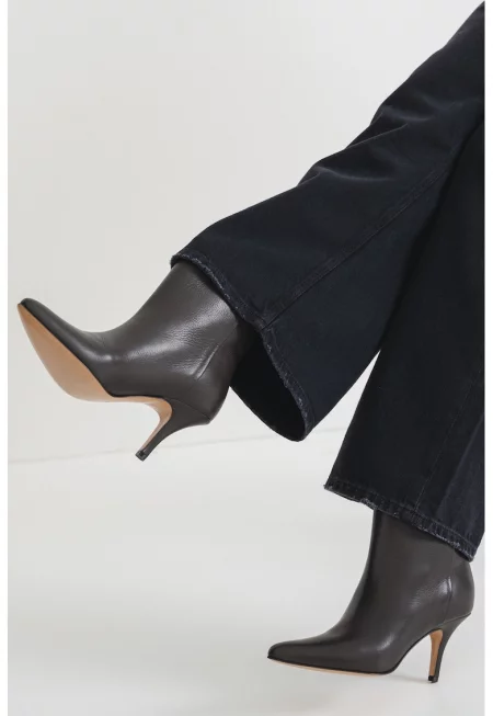 Кожени боти с цип - Tъмносив