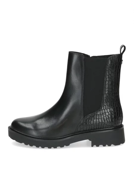 Кожени боти с шарка тип шагрен и текстилни зони - Черен