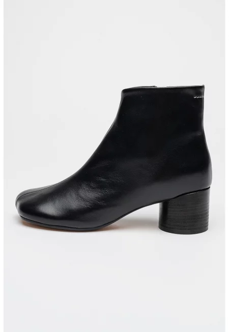 Кожени ботинки с цип - Черен