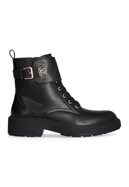 Боти от кожа и еко кожа с метален монограм - Черен