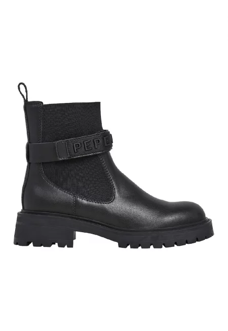 Кожени боти с лого - Черен