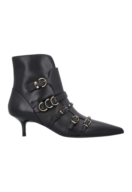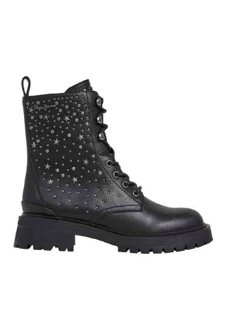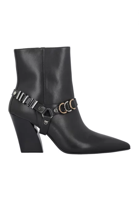 Кожени боти с метални детайли - Черен