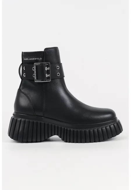 Кожени боти с декоративна каишка с тока - Черен