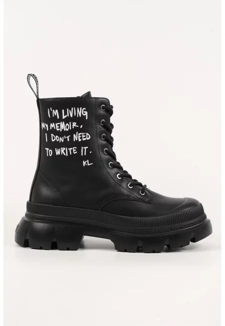 Кожени боти с надпис - Черен