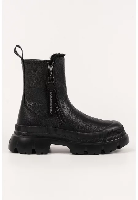 Кожени боти с цип - Черен