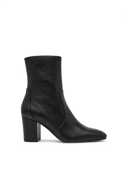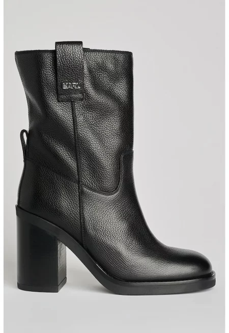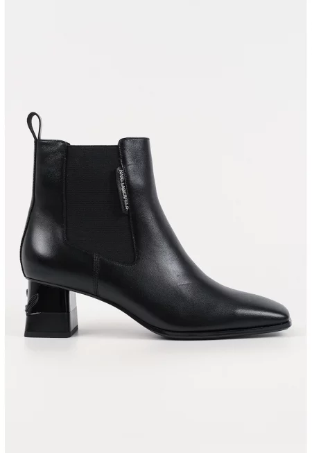 Кожени боти с квадратен връх и релефно лого на тока - Черен