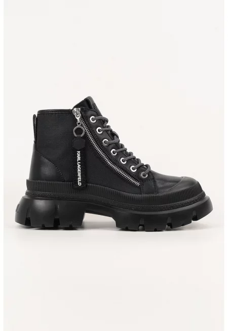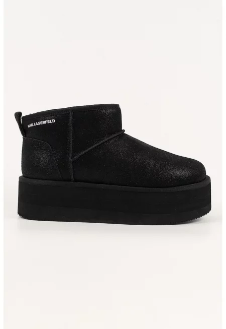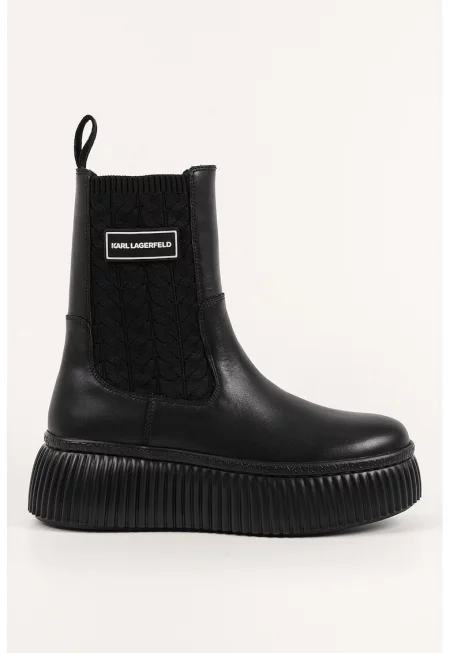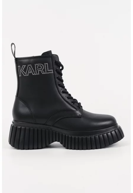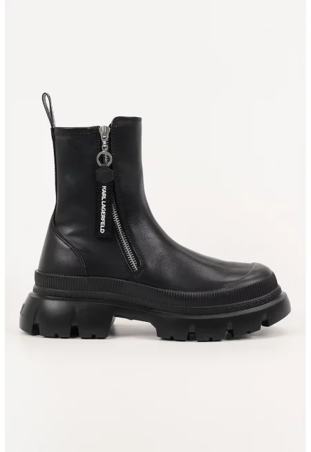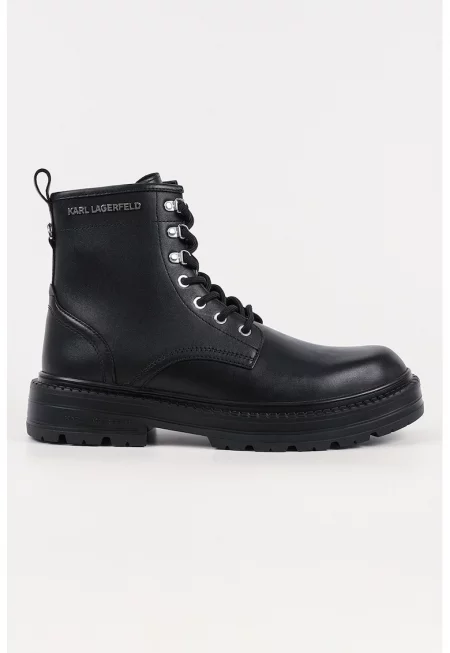 Кожени боти с релефно лого - Черен