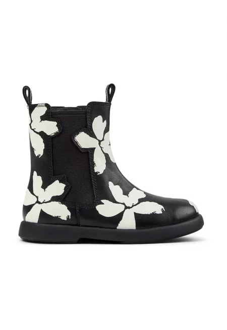 Кожени боти с флорален принт - Бял/Черен