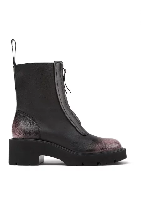 Боти от еко кожа с ток и цип отпред - Избеляло черно/Лилав