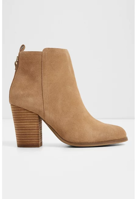 Кожени ботинки Noemia с ток и релеф - Светлокафяв