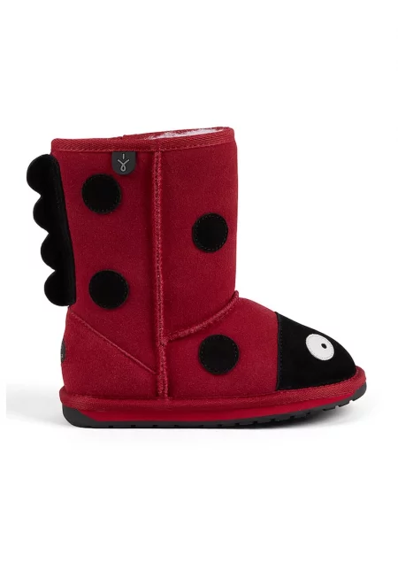Велурени боти с дизайн на калинка - Черен/Тъмночервен
