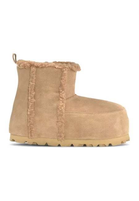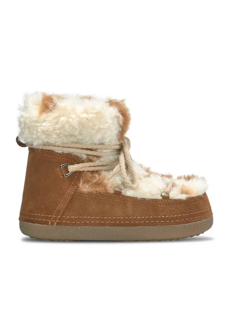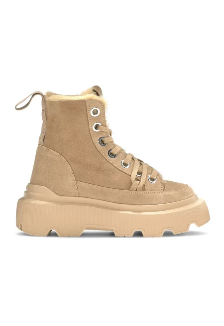 Боти от кожа и вълна с вълнена подплата - Бежов