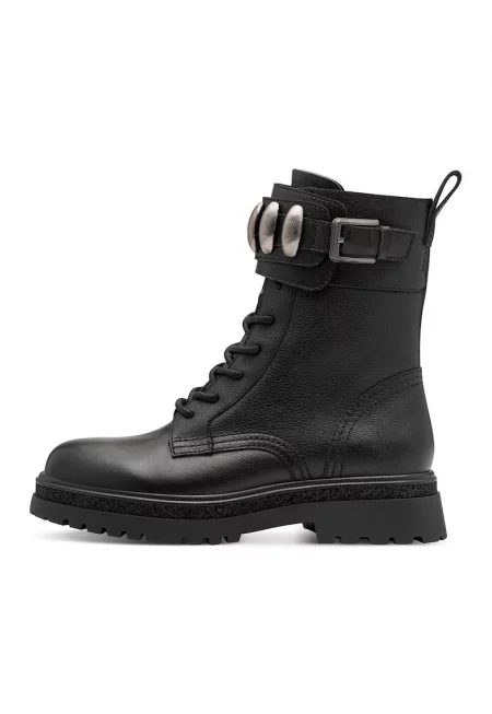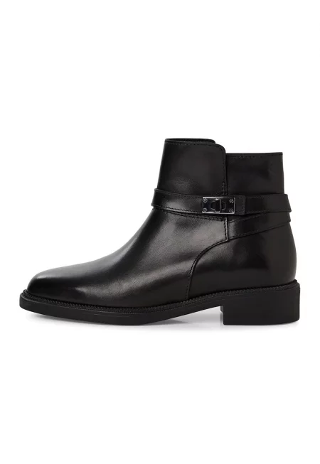 Кожени боти с декоративна каишка с тока - Черен