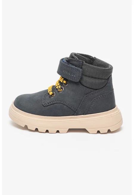 Велурени ботуши с връзки - Тъмносин