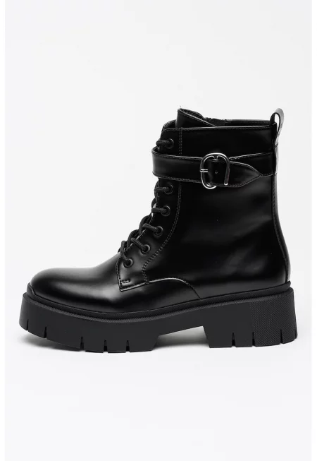 Боти Kris от еко кожа с масивен ток - Черен