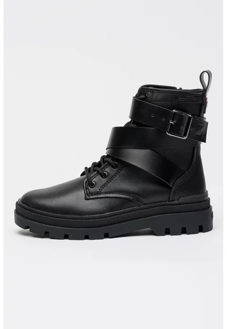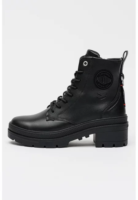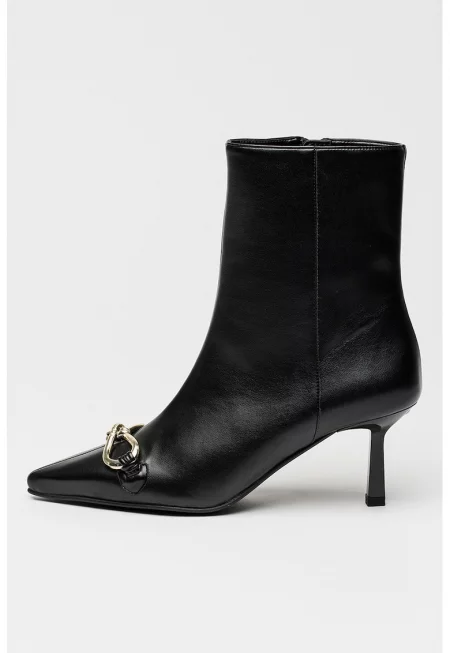 Кожени ботинки с масивен ток - Черен