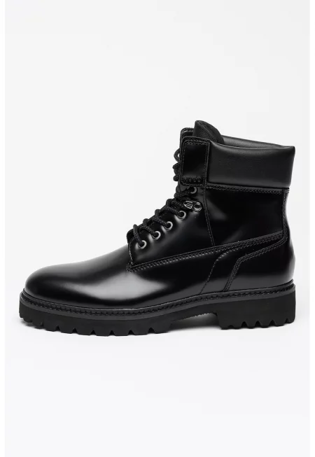 Кожени боти Lenner с връзки - Черен