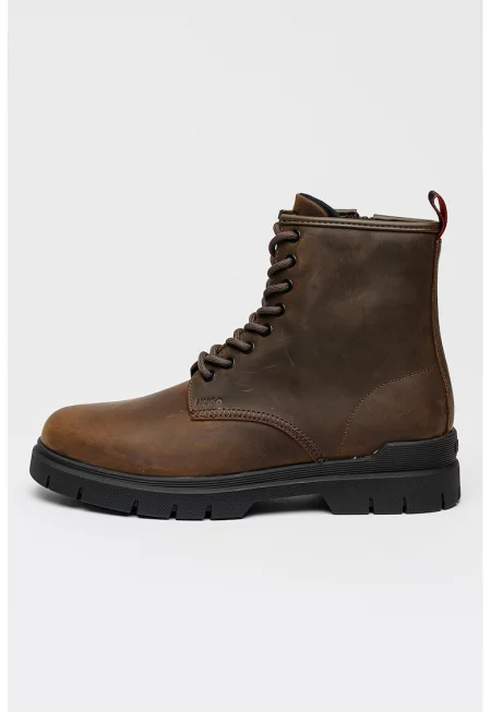 Кожени боти Lenner с връзки - Тъмнокафяв