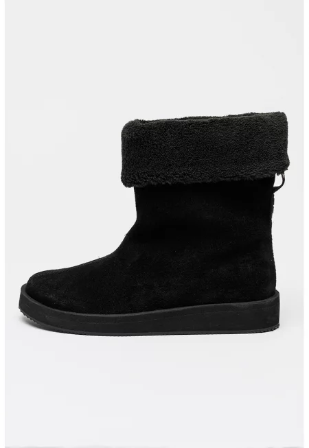 Велурени боти Zaralyn с пухена вата - Черен