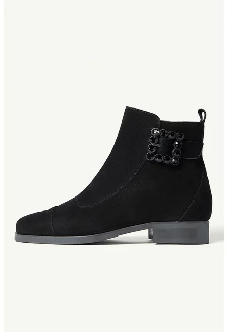 Велурени боти с бижу на токата - Черен