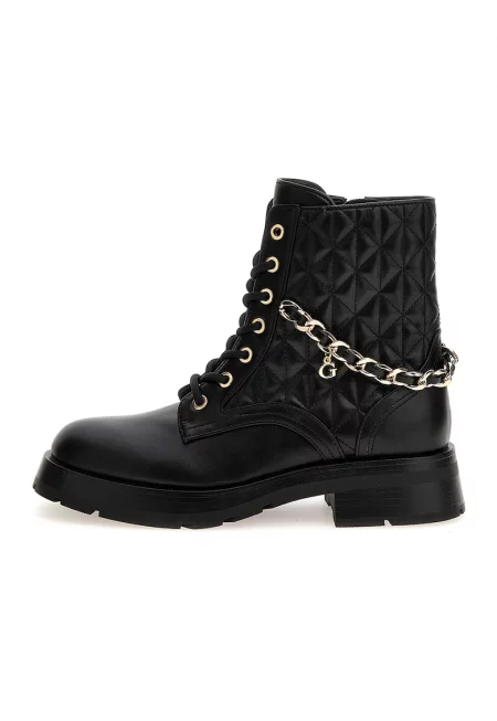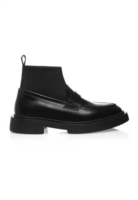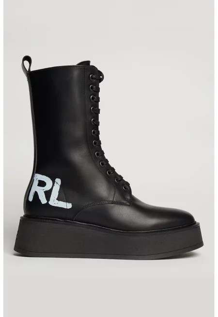 Кожени боти със скосена подметка и лого - Черен